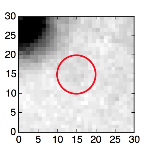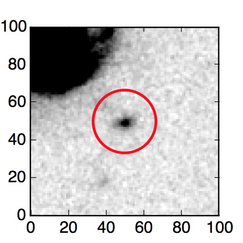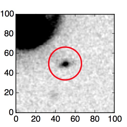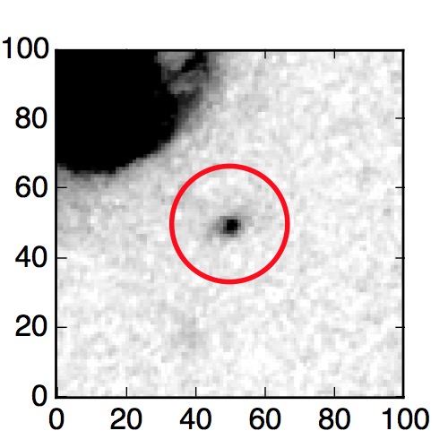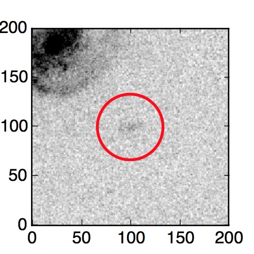 The red circle in the various panels is 1" in radius. The images are 6"x6".