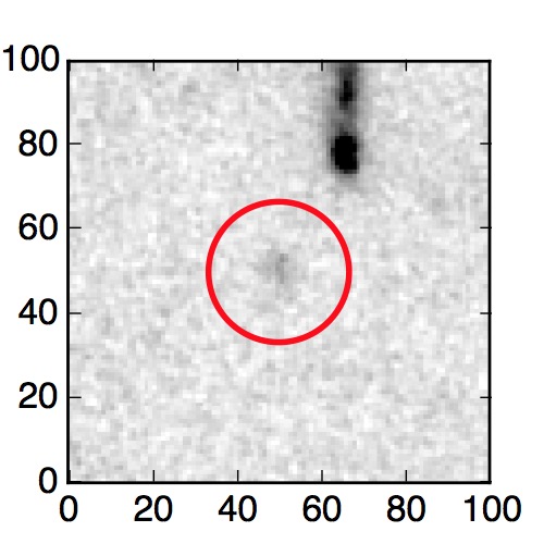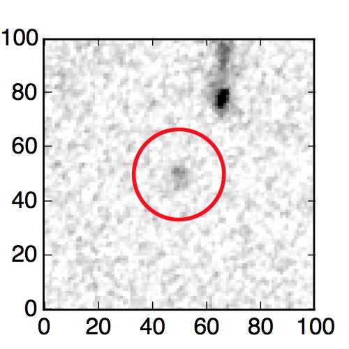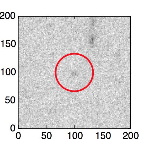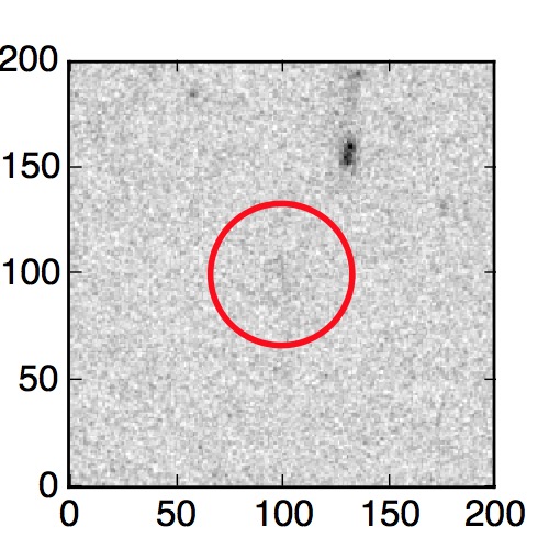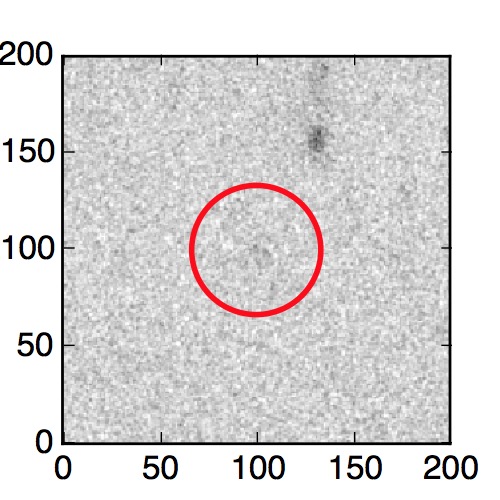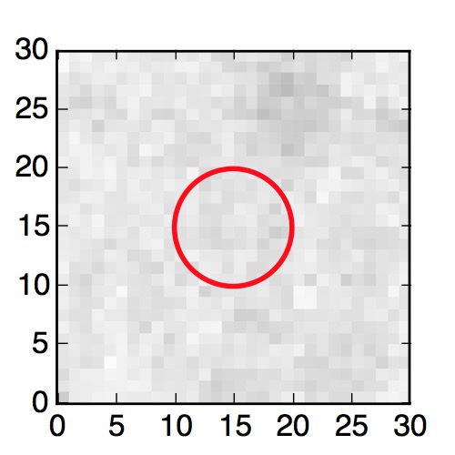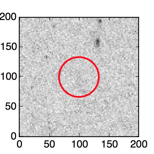 The red circle in the various panels is 1" in radius. The images are 6"x6".