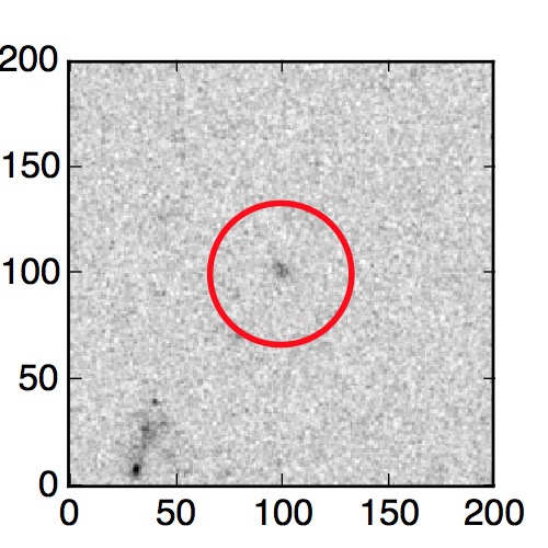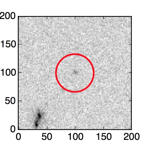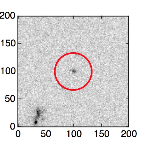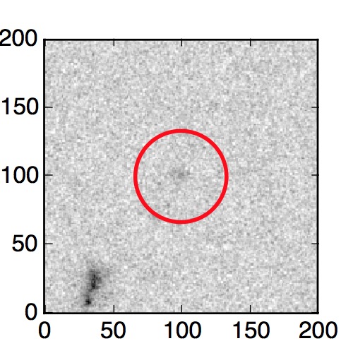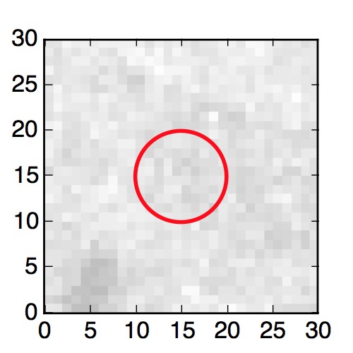 The red circle in the various panels is 1" in radius. The images are 6"x6".