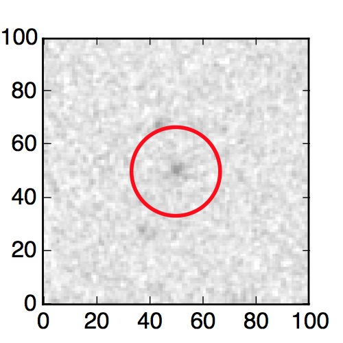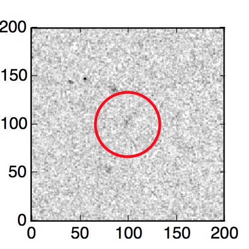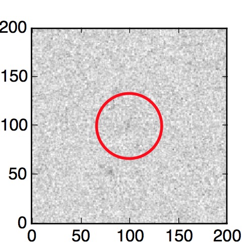 The red circle in the various panels is 1" in radius. The images are 6"x6".