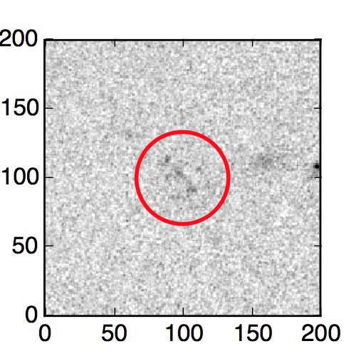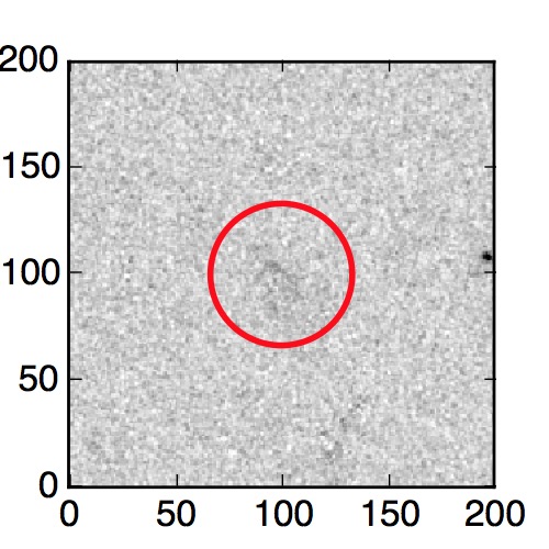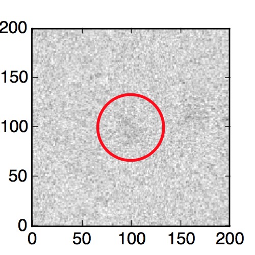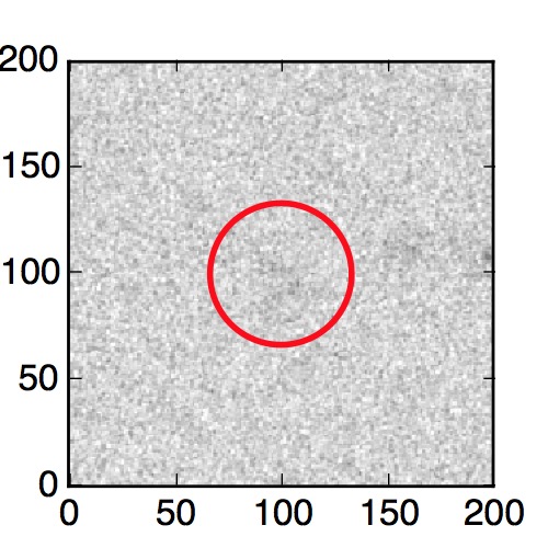 The red circle in the various panels is 1" in radius. The images are 6"x6".