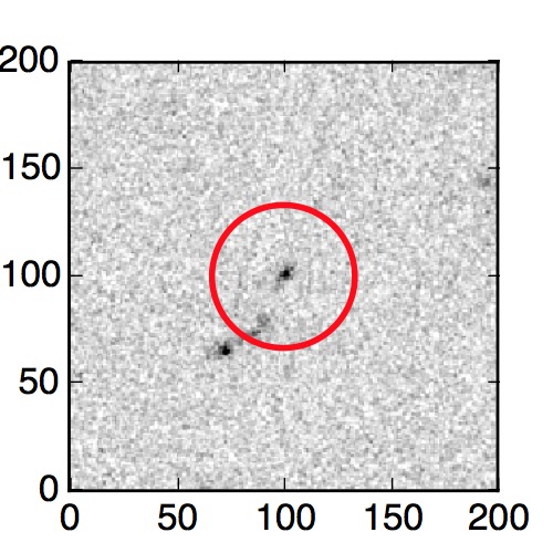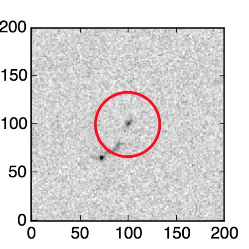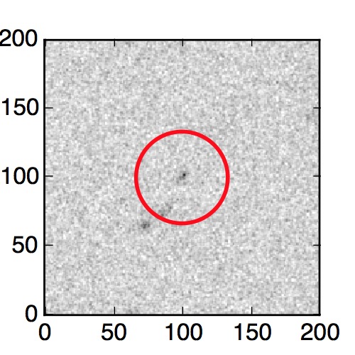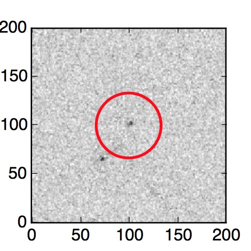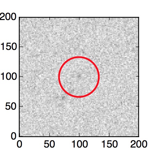 The red circle in the various panels is 1" in radius. The images are 6"x6".