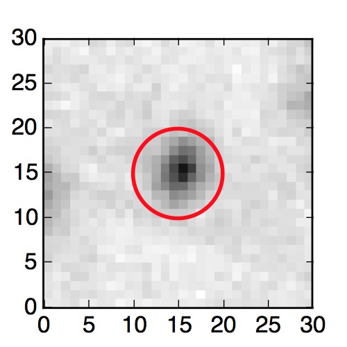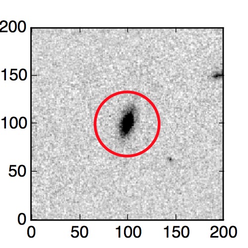 The red circle in the various panels is 1" in radius. The images are 6"x6".