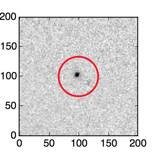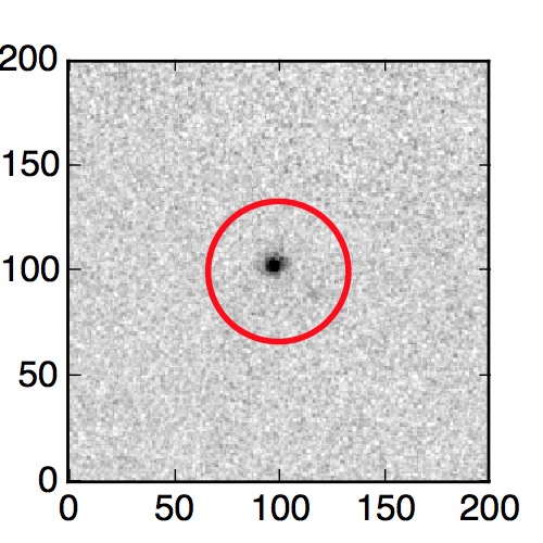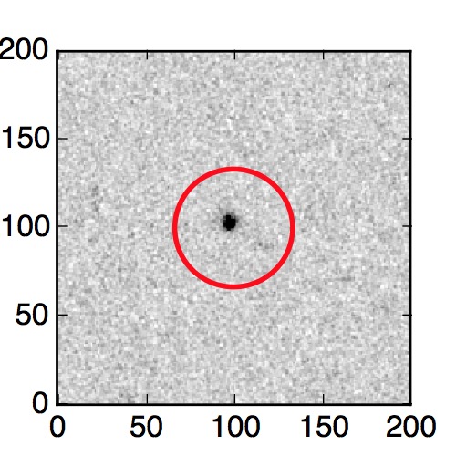 The red circle in the various panels is 1" in radius. The images are 6"x6".