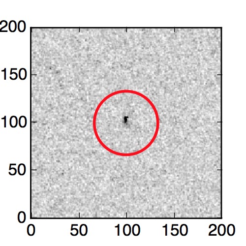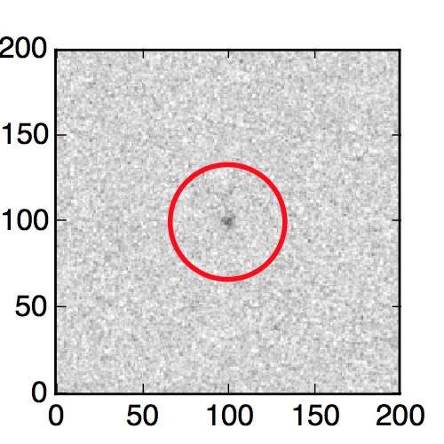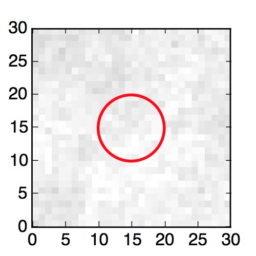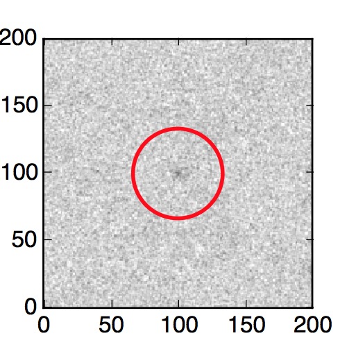 The red circle in the various panels is 1" in radius. The images are 6"x6".