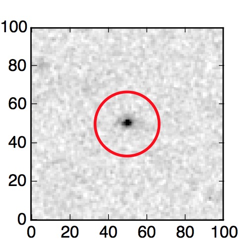The red circle in the various panels is 1" in radius. The images are 6"x6".