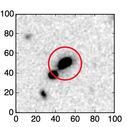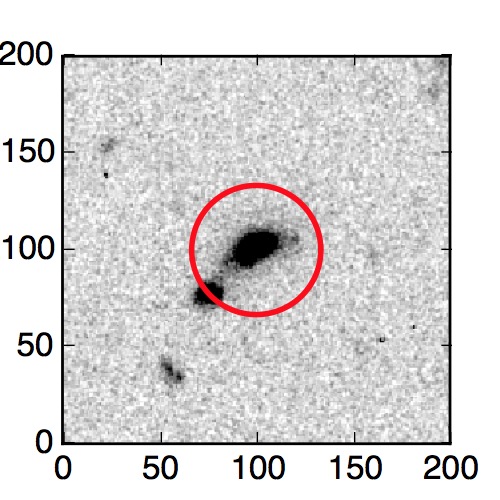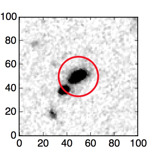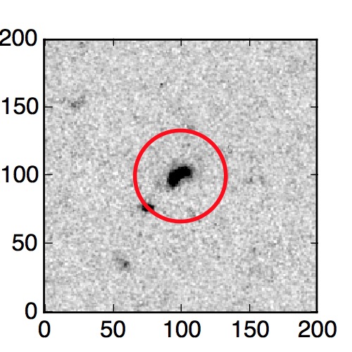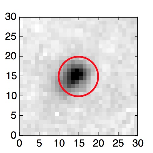 The red circle in the various panels is 1" in radius. The images are 6"x6".