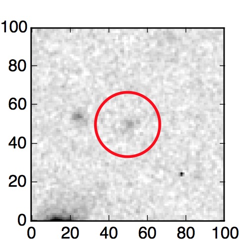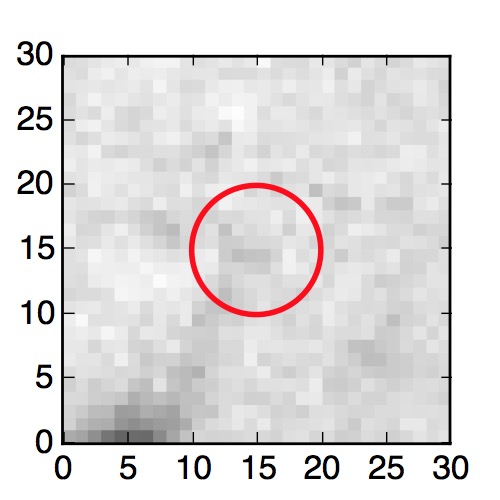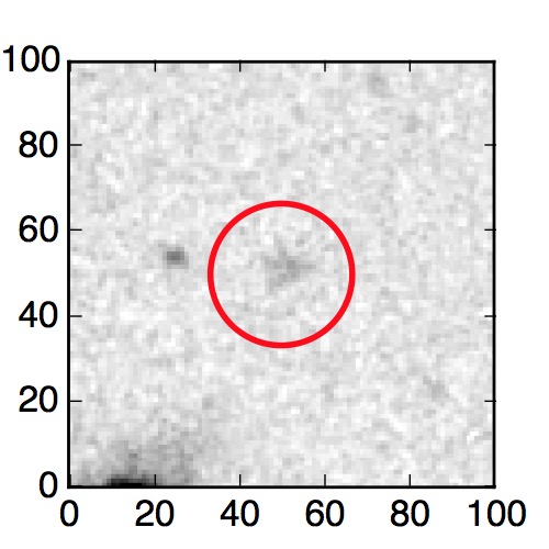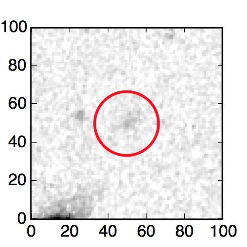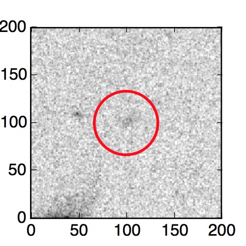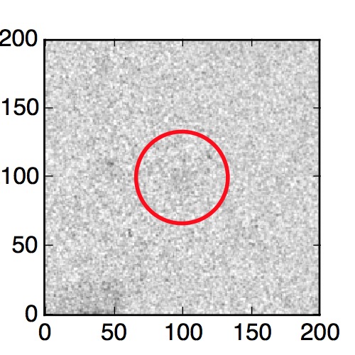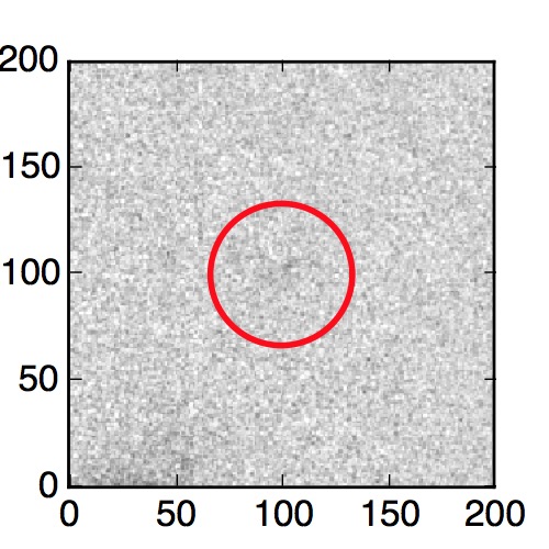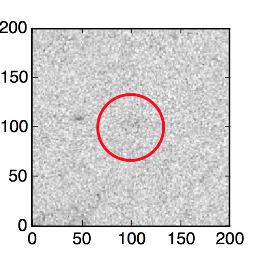 The red circle in the various panels is 1" in radius. The images are 6"x6".