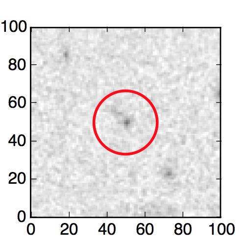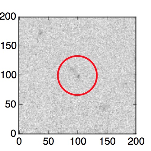 The red circle in the various panels is 1" in radius. The images are 6"x6".