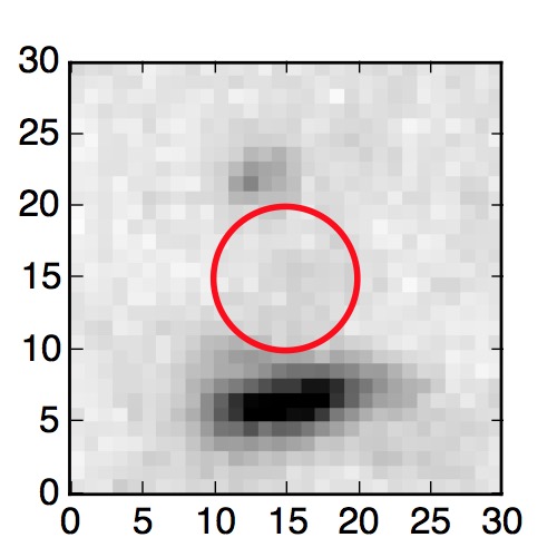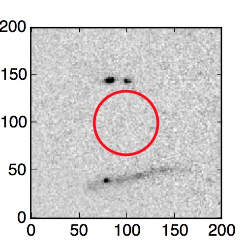 The red circle in the various panels is 1" in radius. The images are 6"x6".