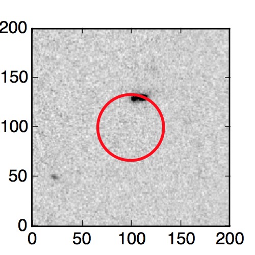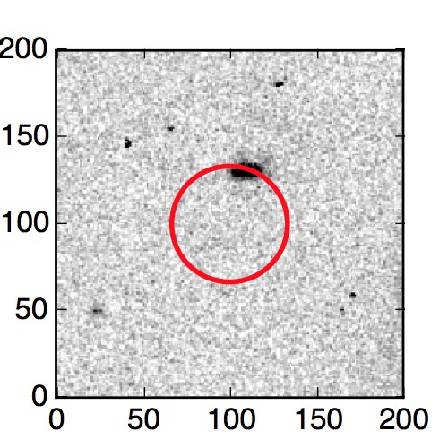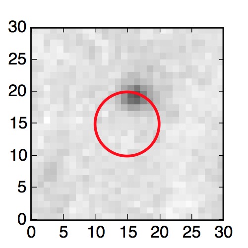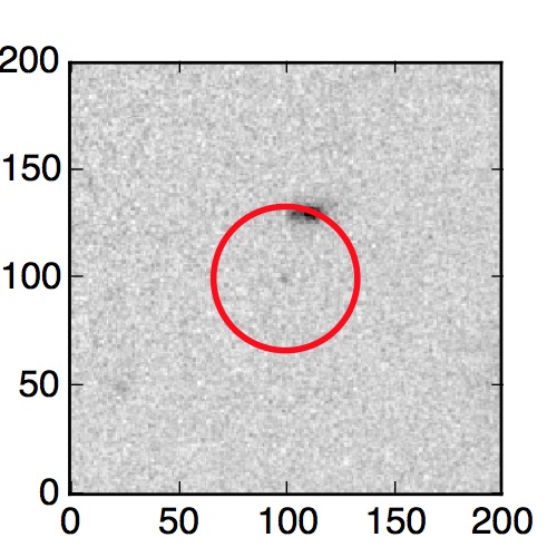 The red circle in the various panels is 1" in radius. The images are 6"x6".