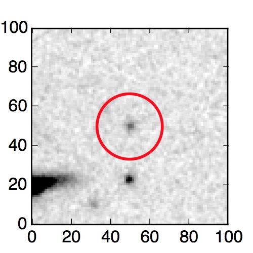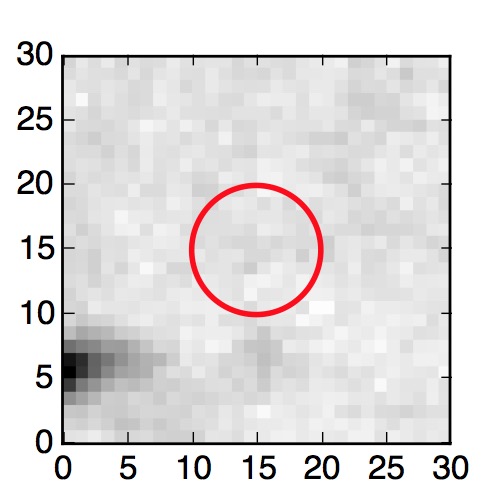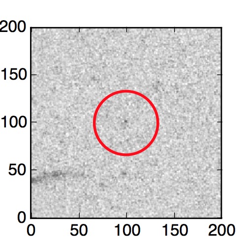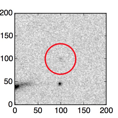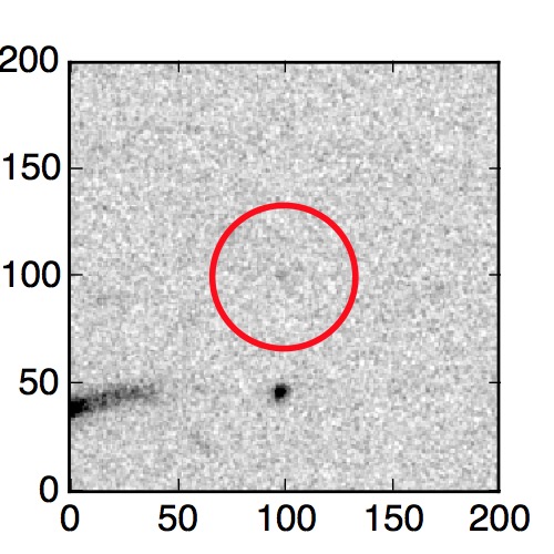 The red circle in the various panels is 1" in radius. The images are 6"x6".