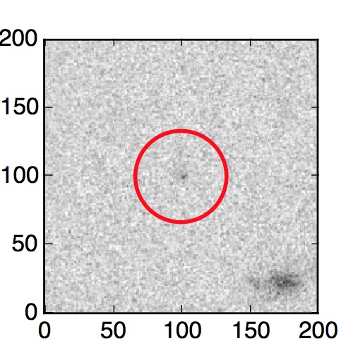 The red circle in the various panels is 1" in radius. The images are 6"x6".