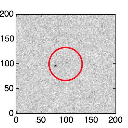 The red circle in the various panels is 1" in radius. The images are 6"x6".