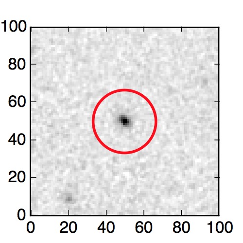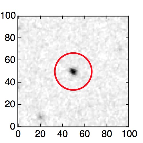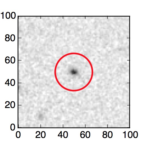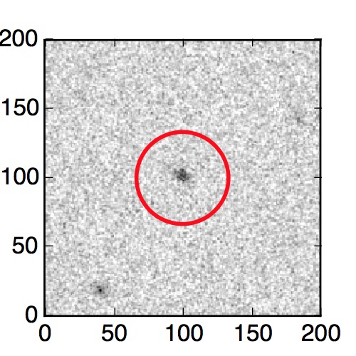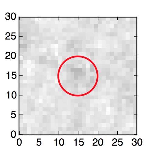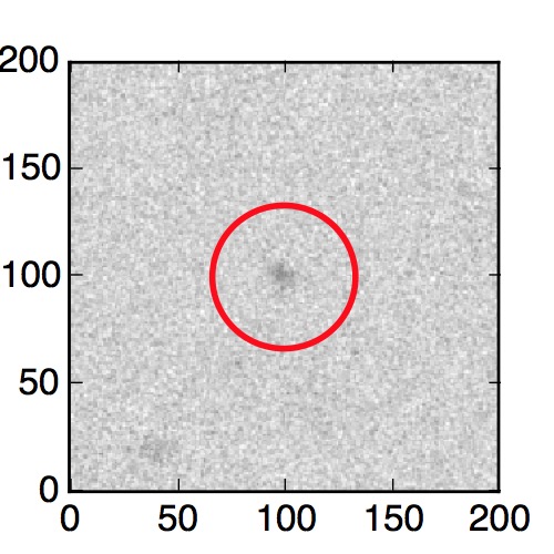 The red circle in the various panels is 1" in radius. The images are 6"x6".