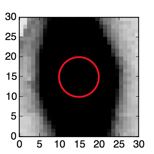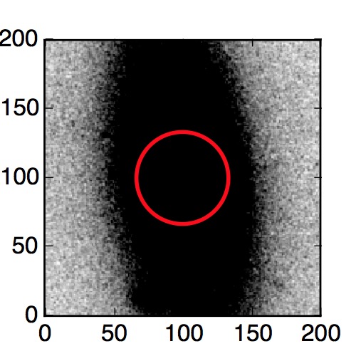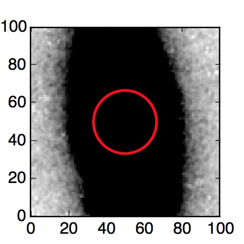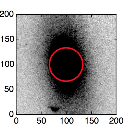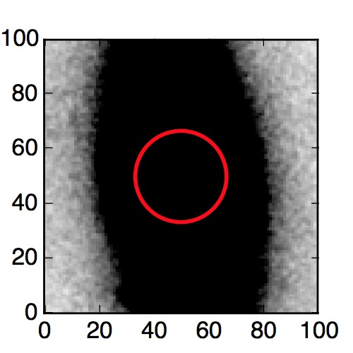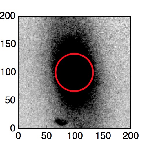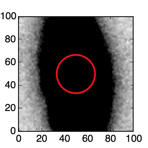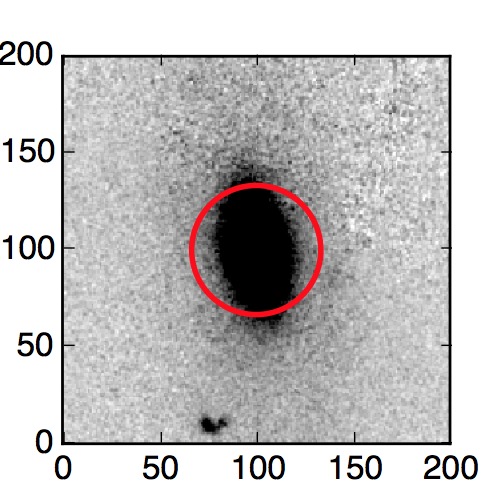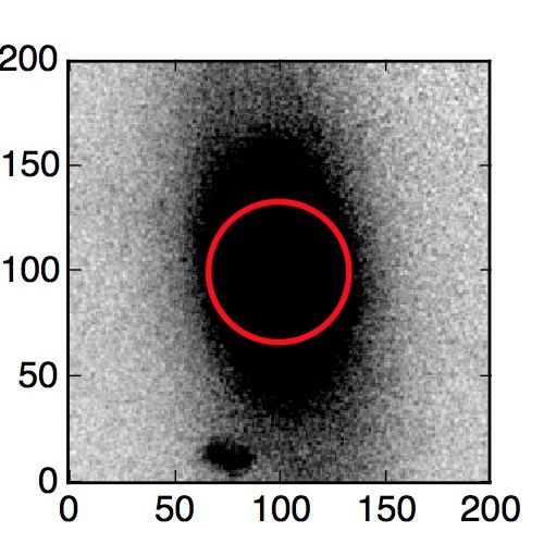 The red circle in the various panels is 1" in radius. The images are 6"x6".