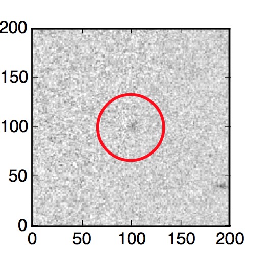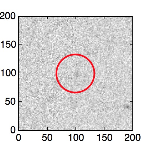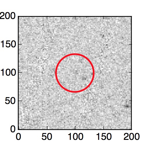 The red circle in the various panels is 1" in radius. The images are 6"x6".