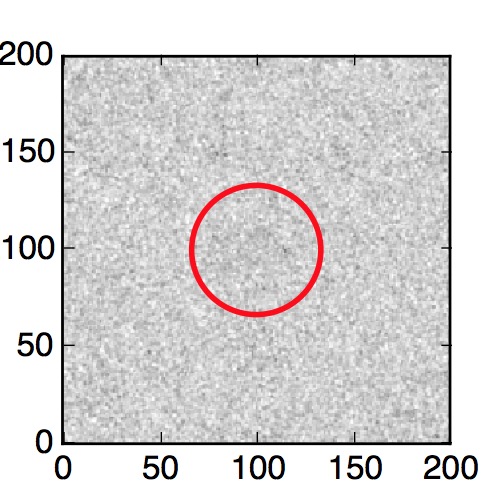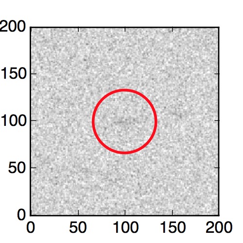 The red circle in the various panels is 1" in radius. The images are 6"x6".