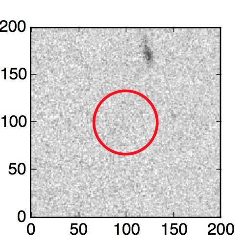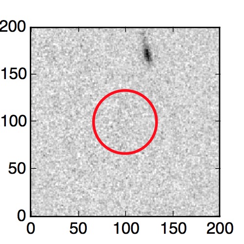 The red circle in the various panels is 1" in radius. The images are 6"x6".