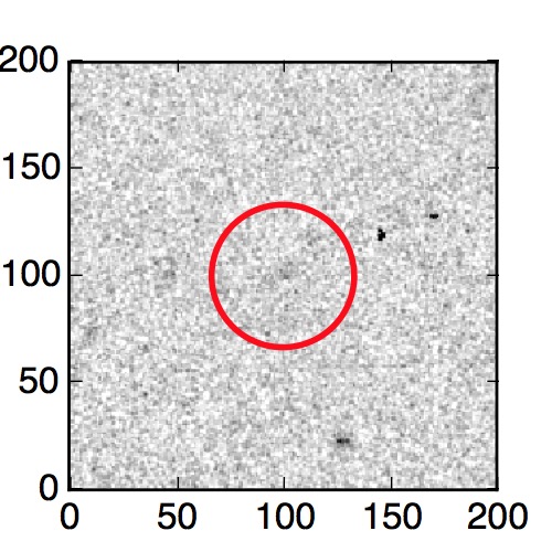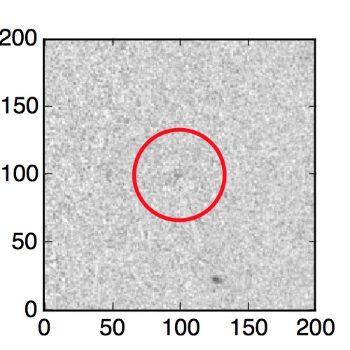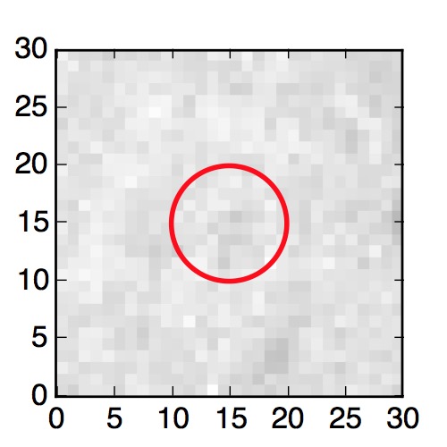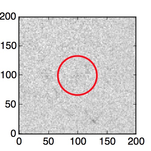 The red circle in the various panels is 1" in radius. The images are 6"x6".