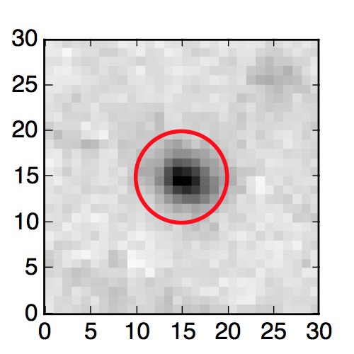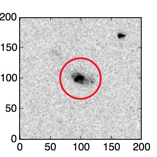The red circle in the various panels is 1" in radius. The images are 6"x6".